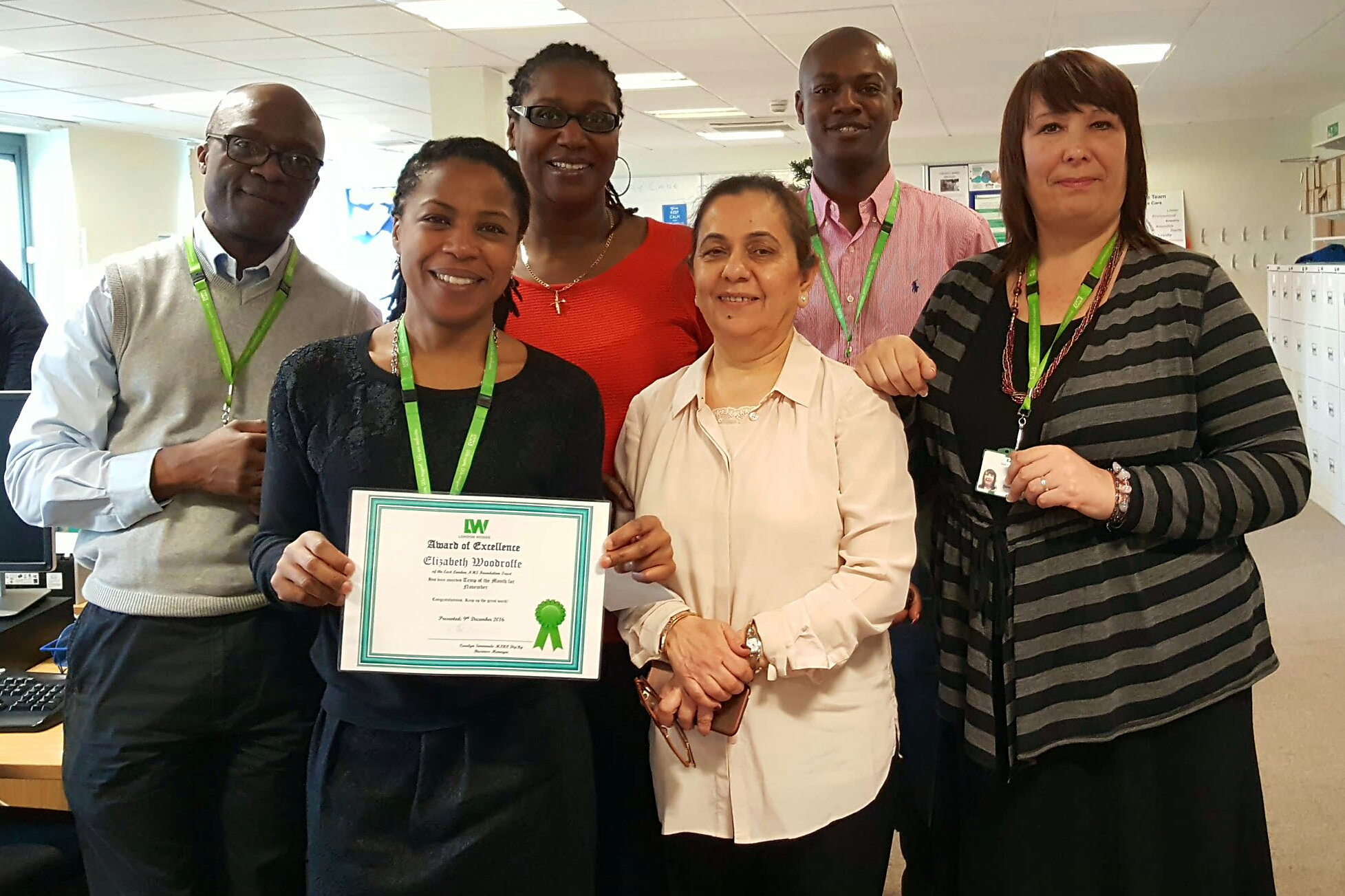 I made my way up to the third floor and popped myself behind a computer screen, pretending to be another member of staff; our winner for November’s temp of the month sits opposite me completely oblivious. I am immediately impressed to see her working away at her computer, but also the good atmosphere between her and the team. She is one of our longest standing temps and we are excited to be honouring her with the award. Liz Woodroffe has been working as a Minute Taker / Typist at the East London NHS Foundation Trust since March 2015 and her hard work is thoroughly appreciated by all those that she works with and supports.